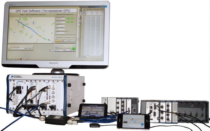 Для решения задачи был разработан генератор сигналов стандарта GPS. Генератор дал возможность моделировать различные условия приема GPS-сигнала системой синхронных измерений. Генератор сигналов GPS построен на платформе PXI. Генератор управляется контроллером NI PXIe 8115, установленный в шасси NI PXIe 1062Q. Основным элементом системы стал векторный генератор ВЧ-сигнала в диапазоне 250 КГц-2,7 ГГц NI PXIe-5672. Генератор ВЧ состоит из генератора сигналов произвольной формы NI PXIe 5442 и преобразователя частоты ВЧ сигнала с повышением NI PXI 5610. Программное обеспечение создано в среде программирования NI LabVIEW. Модуль формирования ВЧ сигнала по стандарту GPS разработан с применением NI GNSS Simulation toolkit. Разработанная система позволила проводить исследования влияния качества GPS-сигнала на точность синхронизации измерений. Это позволило разработать систему синхронных измерений с величиной рассинхронизации не превышающей 1 мкс.